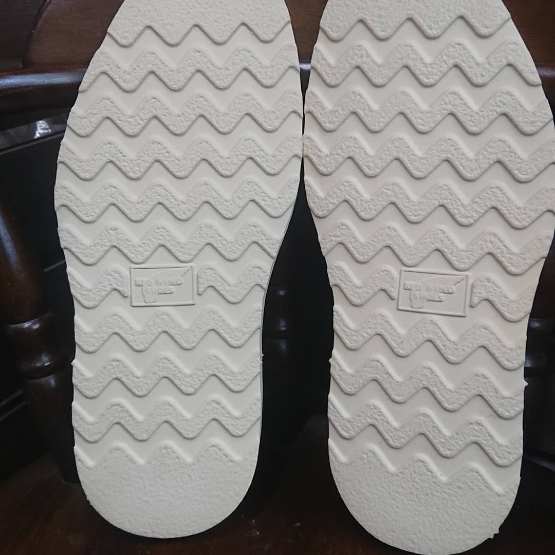 純正ソールは色調も同じでレッドウイングのオリジナルソールと同等の硬度で交換しますので長くご使用いただけます。
