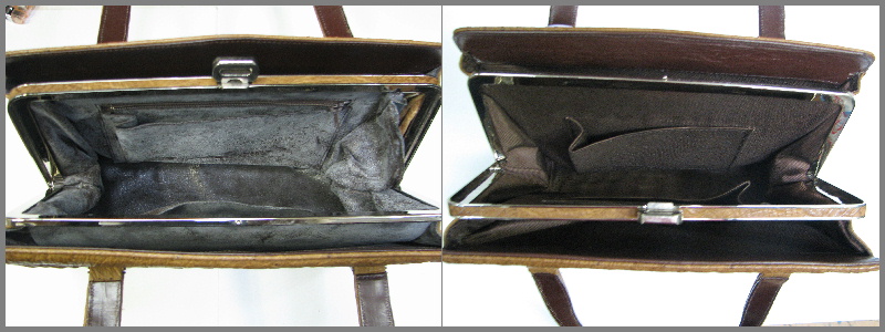 ハンドバックに多い症例です。これもインナーの合皮の経時劣化です。 インナーを張り替え、ポケット、ファスナーなど6室シャンタン布張り替えて完成! 接着仕上げの部分もきちんと縫製して仕上げますので修理前より強度UP 様々なタイプのバック修理もご相談下さい |