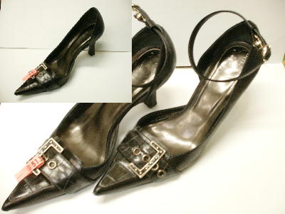 パカパカ脱げてしまうパンプスにベルトを着けてみました。